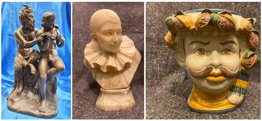 Il posto ideale per andare a caccia di artistici pezzi unici, fra porcellane del secolo scorso, statuine di squisita fattura, dipinti d’epoca. Ad esempio, in questa edizione si potranno ammirare un delicato Pierrot in alabastro firmato dallo scultore Pineschi a fine Ottocento, un bronzo sempre di fine Ottocento raffigurante Pan e Dafni, una scultura policroma del longevo ceramista napoletano Cesare Cacciapuoti, vissuto dal 1858 al 1954. Più recente, ma altrettanto affascinante la classica testa di moro della manifattura Alessi Caltagirone.