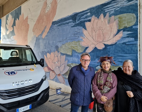 La prima opera faentina, No Mud, No Lotus, sta prendendo forma lungo il muro all’interno dell’accesso al parcheggio del centro commerciale Faenza 1. A realizzarla Kathrina Rupit, in arte KinMx, artista di origine messicana ma che vive e lavora a Dublino.