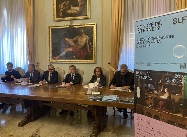 La decima edizione dello Smart Life Festival è stata presentata in conferenza stampa nel palazzo municipale di Modena con gli interventi di Sergio Duretti, responsabile della Transizione digitale e governo dei dati pubblici del Comune di Modena, Vittorio Lugli, presidente della Fondazione Collegio San Carlo, Carlo Adolfo Porro, Magnifico Rettore di UniMoRe, Eleonora De Marco, vicepresidente della Fondazione di Modena, Giuseppe Molinari, presidente della Camera di Commercio di Modena, e Gabriele Pollastri, curatore di Smart Life Festival per la Fondazione Collegio San Carlo (vedi foto in alto e a lato).