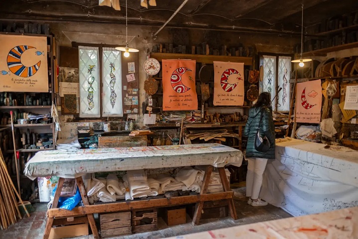Saranno i volontari FAI, appositamente formati, a guidare i visitatori lungo un percorso esclusivo normalmente poco accessibile. La visita prende avvio dal cortile della Bottega, con il racconto delle radici storiche e artigiane della Stamperia. Si prosegue nel nuovo laboratorio, dove vengono illustrate le tecniche di stampa, i tessuti, i colori e gli stampi utilizzati ancora oggi, in continuità con la tradizione. Il percorso conduce poi nel locale del mangano ottocentesco, spazio storico in cui venivano lavorati i tessuti e conservati volumi, disegni e stampi antichi. Infine si raggiunge l’antico laboratorio di stampa, custode dei più preziosi stampi e del racconto conclusivo sulla lunga storia della Stamperia Pascucci.