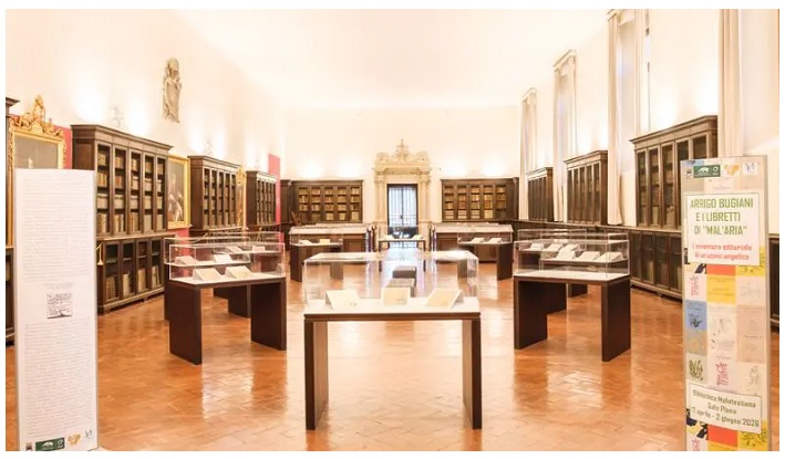 La mostra occupa gran parte della Sala Piana della Biblioteca Malatestiana ed è stata inaugurata venerdì 17 aprile. Prima dell’inaugurazione nell’Aula Magna della Biblioteca Malatestiana si è svolto un dibattito nel quale, grazie agli studi del curatore della mostra, Pasquale Di Palmo, il ruolo di Bugiani è stato messo in relazione alle vicende della microeditoria italiana degli ultimi quarant’anni. Arrigo Bugliani e i libretti di Mal’Aria esporrà circa 80 di questi libretti e varia documentazione, tra cui foto, lettere e altri libri scritti dallo stesso editore, che ebbe rapporti con alcuni dei maggiori intellettuali, scrittori e artisti del Novecento.