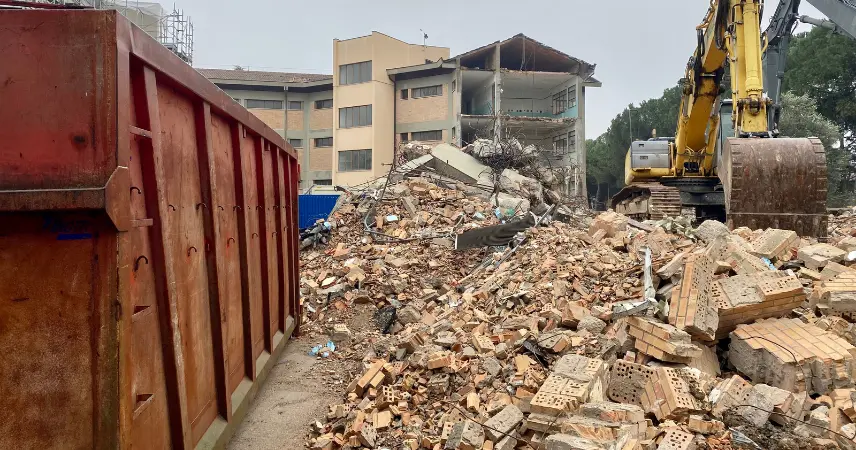 Cesena, scuola media ‘Anna Frank’ a Sant’Egidio, proseguono le demolizioni del vecchio edificio