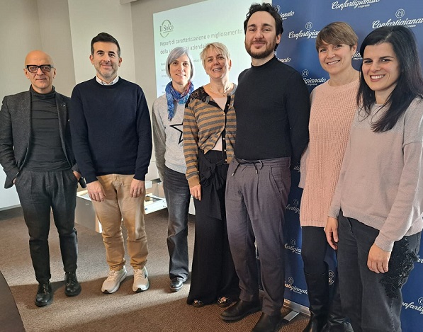 Nella foto una delle imprese che hanno ricevuto il report con i responsabili del progetto di Confartigianato cesenate.