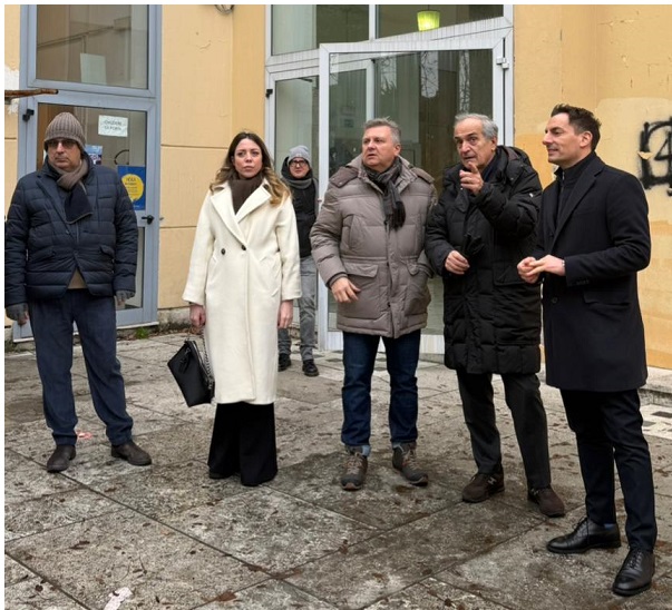 (Sesto Potere) – Forlì, 19 gen. “Un sopralluogo opportuno dopo la notizia dell’arrivo di un milione e 300mila euro dal ministero della Cultura, da destinare alle indagini conoscitive e al restauro del complesso architettonico dell’ex collegio aeronautico della GIL di Forlì nell’ottica dell’istituzione di un ‘Museo del Volo’”. Questo il commento del deputato Jacopo Morrone, segretario della Lega Romagna, che questa mattina, lunedì 19 gennaio, ha visitato la struttura insieme al sindaco Gian Luca Zattini, al vicesindaco Vincenzo Bongiorno e agli assessori Andrea Cintorino e Vittorio Cicognani (nella foto).