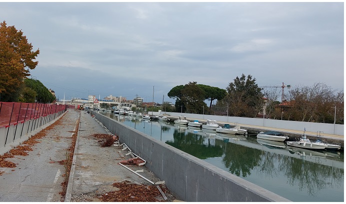 Su quella destra saranno invece costruiti nuovi muri arretrati rispetto all’allineamento attuale, con il risultato, di fatto, di ottenere una banchina lato fiume, in continuità con quanto già realizzato verso monte.