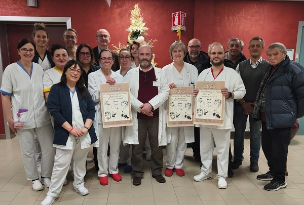 La dottoressa Elena Amaducci a nome dell’intera equipe dell’Hospice e dell’Ospedale di Comunità ha espresso gratitudine e riconoscenza per la sensibilità e generosità dimostrate dai donatori. In particolare, la donazione dei 12 televisori, con la sostituzione di quelli obsoleti, ha aggiunto comfort all’ambiente, contribuendo a rendere più accoglienti e familiari le stanze di degenza per i pazienti e per chi li assiste, perché l’Hospice possa essere sempre più un luogo di accoglienza e di bellezza per tutti. Durante il tempo di degenza la giornata può diventare lunga e difficile, e la televisione può avere un ruolo di umanizzazione e compagnia, dando la possibilità a pazienti e familiari di trascorrere ore di svago e leggerezza, o anche di attenzione a ciò che accade nel mondo. La donazione del saturimetro palmare destinato all’attività di degenza è per gli operatori di grande utilità e di utilizzo quotidiano, e va ad arricchire la dotazione tecnologica già in essere, con l’obiettivo di migliorare la qualità delle cure e garantire efficienza e qualità dell’assistenza. La donazione ormai tradizionale dei calendari dialettali da destinare alle stanze di degenza di Hospice e OSCO è un gesto premuroso nei confronti dei pazienti e rappresenta un forte segno di legame con la comunità. A tutti voi – ha sottolineato la dottoressa Amaducci – va il nostro più sincero personale ringraziamento: apprezziamo particolarmente i gesti di sensibilità nei confronti dei pazienti, e con essi l’attenzione e il sostegno che vengono dati al nostro impegno quotidiano. Piccoli e grandi gesti come questi possono fare una grande differenza nel migliorare l’esperienza di degenza dei pazienti, e hanno un grande valore morale: sono un segno tangibile di solidarietà e attenzione nei confronti della comunità e della salute del territorio.”