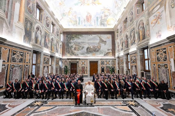 L’incontro con la delegazione dell’Anci è avvenuto ieri mattina in Vaticano, nella Sala Clementina, alla presenza anche del card. Matteo Maria Zuppi, presidente della Conferenza Episcopale Italiana.