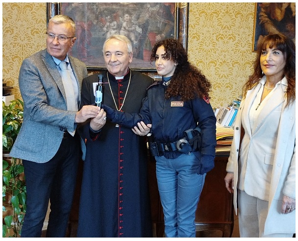 (Sesto Potere) – Forlì – 1 aprile 2026 – Ieri, martedì 31 marzo 2026, il vescovo di Forlì-Bertinoro ha ricevuto in episcopio il questore di Forlì-Cesena, dott. Claudio Mastromattei che, insieme alla vicaria, Silvia Gentilini e a una poliziotta, ha consegnato a mons. Livio Corazza l’olio di Capaci, ricavato dagli ulivi piantati nel terreno dove avvenne la strage di mafia che il 23 maggio 1992 fa vide la morte del giudice Giovanni Falcone, della moglie Francesca Morvillo e della sua scorta Vito Schifani, Rocco Dicillo e Antonio Montinaro.