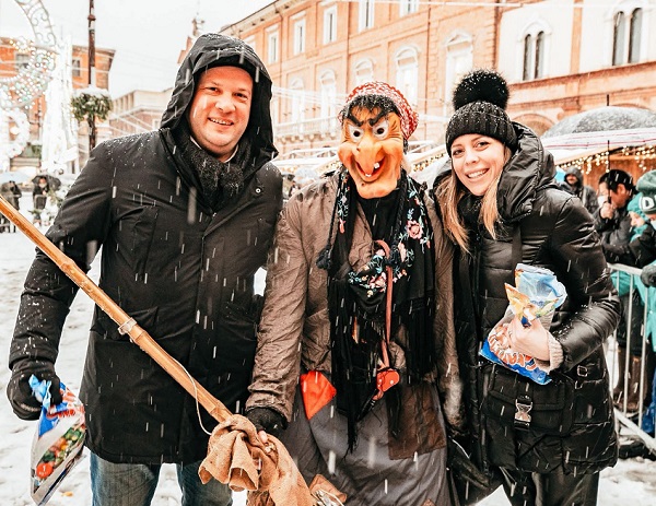 Nonostante la necessaria rimodulazione del programma, in Piazza Saffi erano presenti famiglie e bambini per assistere a uno dei momenti più attesi: l’arrivo della Befana, che si è calata dal Palazzo Comunale distribuendo caramelle ai presenti. Una Befana immersa nella neve, scesa per l’occasione sullo snowboard e protagonista di una scena di rara suggestione che ha regalato alla città una vera magia collettiva.