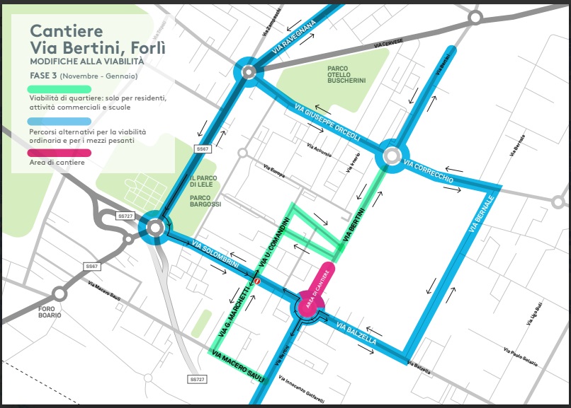 A partire da lunedì 3 novembre, il progetto entrerà nel vivo della sua ultima fase e i lavori si concentreranno sulla rotatoria stradale via Balzella – via Bertini – via Solombrini, che verrà parzialmente impegnata e in parte interdetta alla circolazione.