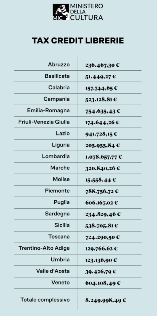 (Sesto Potere) – Roma – 11 dicembre 2025 – Lo scorso 31 ottobre si è chiuso il bando della Direzione Generale Biblioteche del Ministero della Cultura per la presentazione delle domande d’accesso al Tax Credit Librerie, riferito al 2024.