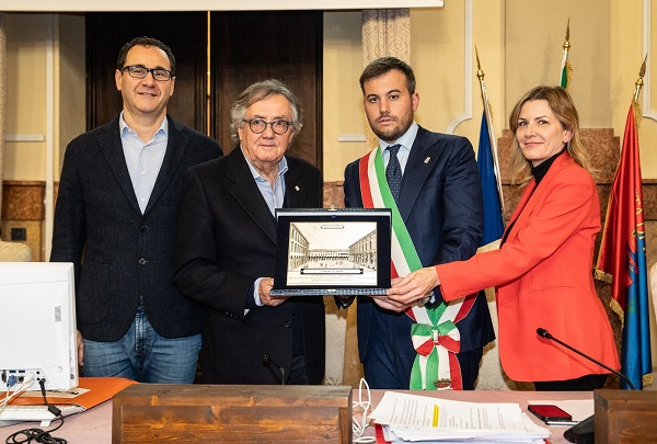 Il riconoscimento consegnato dal Sindaco è una riproduzione di piazza G. Matteotti di Imola, un simbolo significativo che celebra il legame con la nostra città.