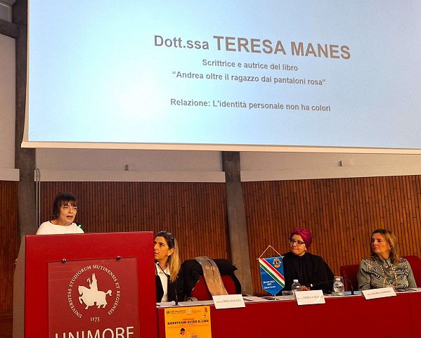 “Nei confronti di Teresa Manes nutriamo una profonda gratitudine e stima per l’intensa attività di formazione che promuove nei confronti dei giovani e per gli stimoli educativi che è in grado di offrire a noi adulti partendo dalla propria dolorosa esperienza personale – ha sottolineato Marwa Mahmoud, assessore alle Politiche educative del Comune di Reggio Emilia – i libri donati a sei scuole secondarie di primo grado della città dal Lions Club Host Reggio Emilia Tricolore, a cui va il nostro ringraziamento, hanno permesso agli studenti di classi diverse di partecipare a un percorso con laboratori animati da Officina educativa, in cui sono stati approfonditi temi come bullismo e cyberbullismo e il significato del rispetto per gli altri, imparando a riconoscere pregiudizi e stereotipi. Poterlo fare attraverso un percorso guidato sul filo conduttore delle pagine del libro è stato decisivo per creare nei giovani una reale consapevolezza”.