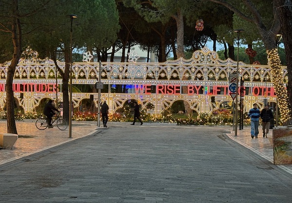 (Sesto Potere) – Cervia / Milano marittima – 10 dicembre 2025 – A Milano Marittima (Ra) il Natale si veste d’arte. Novità di queste festività natalizie è “We Rise by Lifting Others”, spettacolare installazione luminosa di Marinella Senatore – tra le artiste italiane più acclamate al mondo – visibile fino a martedì 6 gennaio 2026 nella Rotonda Primo Maggio (opera che dà il titolo all’intera anteprima invernale di Mare d’Arte Festival).