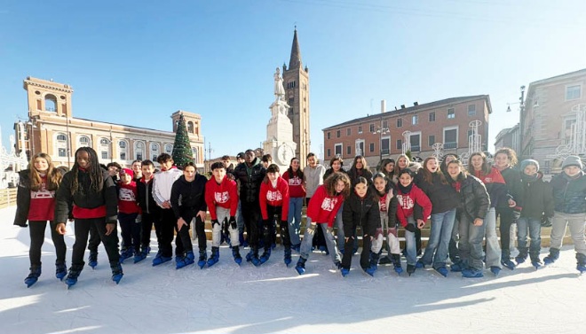 E ora, durante queste festività natalizie, agli organizzatori non è sfuggita la presenza della pista del ghiaccio in Piazza Saffi.