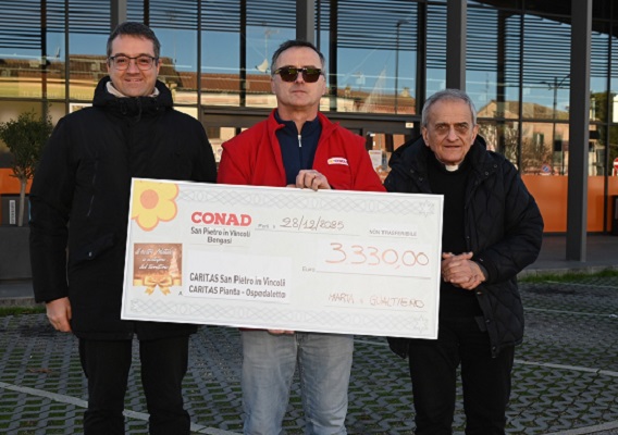«Essere parte di una comunità significa saperne ascoltare i bisogni, specialmente in un periodo dell’anno carico di significato come quello natalizio — ha dichiarato il socio Conad Gualtiero Mariotti —. Anche quest’anno abbiamo voluto che le festività fossero l’occasione per un’iniziativa di valore sociale, capace di trasformare la spesa quotidiana in un gesto concreto di solidarietà. Per noi essere “Persone oltre le cose” significa anche sostenere le realtà del territorio che sono al fianco di chi attraversa un momento di difficoltà. Con questa donazione vogliamo ribadire la nostra vicinanza alle comunità di cui facciamo parte. Questa erogazione servirà per poter dare concreto supporto a quelle famiglie e singole persone verso le quali Caritas è tradizionalmente impegnata, che si tratti di un aiuto per le utenze o di un sostegno per altre esigenze essenziali legate alla vita quotidiana».