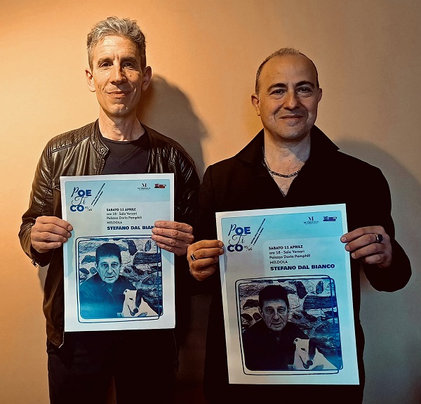 A dialogare con l’autore saranno il giornalista e scrittore Marco Colonna (nella foto con Michele Drudi), direttore artistico di ‘Poetico’, e il poeta Matteo Zattoni, presidente di giuria della prima edizione del concorso ‘Poetico per libri editi’ abbinato al Festival.