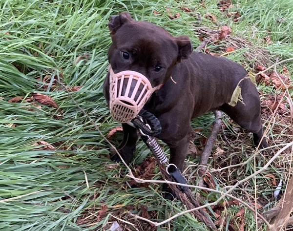 In una parte nascosta della vegetazione, gli operatori hanno individuato un cane meticcio tipo pitbull di colore marrone, di taglia media, e che guaiva.