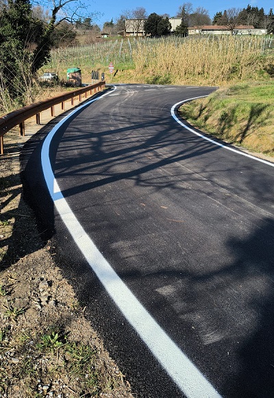 Sono stati sistemati due movimenti franosi in prossimità del fosso di Monte Maggiore; sono stati portati a termine la regimazione delle acque, l’arretramento della carreggiata, l’asfaltatura, la posa delle barriere di protezione e della segnaletica.