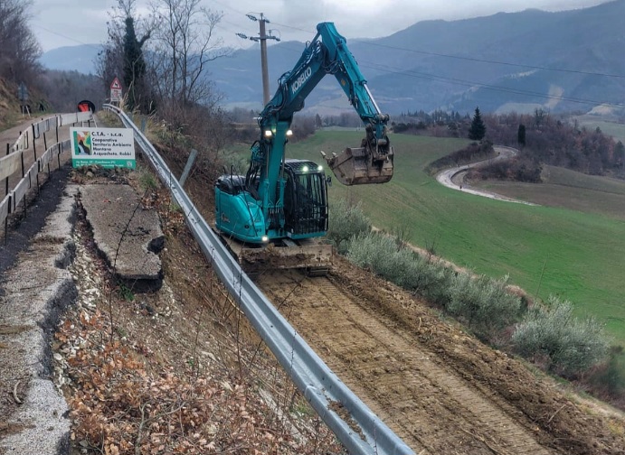 L’impresa esecutrice Eco Demolizioni S.r.l. Società Benefit di Rimini in questi giorni ha iniziato le opere propedeutiche alla trivellazione dei pali e alla formazione delle paratie per il ripristino dei dissesti ai km 8+000 e 9+200.