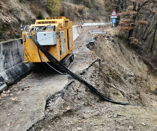 Per il tratto di circa 60 metri al km 2+700, l’intervento per il ripristino prevede la ricostruzione totale della strada, grazie alla costruzione di una sottoscarpa con gabbionata.