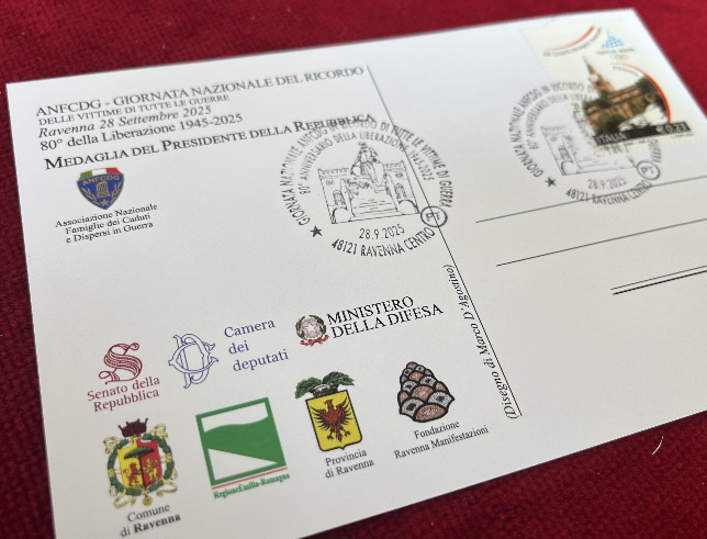 (Sesto Potere) – Ravenna – 29 settembre – A Ravenna, il 28 settembre 2025, in occasione dell’80° Anniversario della Liberazione 1945-2025, Poste Italiane ha attivato presso il Teatro Dante Alighieri un servizio filatelico temporaneo grazie alla richiesta dall’Associazione nazionale famiglie caduti e dispersi in guerra.