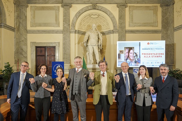 “È fondamentale riscoprire le nostre bellezze per essere consapevoli di un patrimonio immenso che abbiamo il dovere di custodire, tutelare e valorizzare. L’aspetto più bello è che lo facciamo insieme con il FAI ma soprattutto con tanti giovani, 17 mila Apprendisti Ciceroni, che condurranno tanti italiani a scoprire e riscoprire le nostre bellezze nella bella stagione della primavera” ha commentato il Ministro della Cultura Alessandro Giuli (nella foto di gruppo in alto).