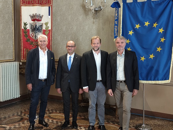 Alessandro Mussetto (direttore UOC Gastroenterologia ed endoscopia digestiva, Ravenna, AUSL Romagna), Fabio Pieraccini (direttore Assistenza Farmaceutuca Ausl Romagna), Dolores Santini (direttore UOC Prevenzione Oncologica Ravenna) e Francesco Sintoni (direttore Distretto Sanitario di Forlì, Direttore ad interim Presidio Ospedaliero Morgagni Pierantoni di Forlì).