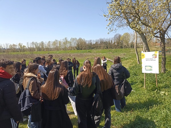 A seguire, la visita è proseguita all’esterno con l’esplorazione del “sentiero degli impollinatori”, dove i ragazzi hanno osservato da vicino i bee hotel e le aiuole dedicate, comprendendo concretamente il ruolo fondamentale degli insetti impollinatori per la biodiversità e la salvaguardia degli ecosistemi. La giornata si è conclusa con la visita agli orti sociali, esempio virtuoso di utilizzo condiviso e sostenibile del territorio.