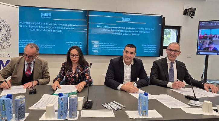 L’accordo è stato siglato oggi e presentato in conferenza stampa (vedi foto) presso la sede della Regione Emilia-Romagna dal presidente della Regione, Michele de Pascale, dall’assessora alle Infrastrutture, Irene Priolo, dal direttore territoriale dell’agenzia delle Dogane e dei monopoli, Marco Cutaia,e dal commissario straordinario dell’Autorità di Sistema Portuale, Francesco Benevolo.