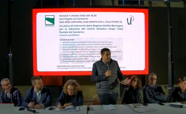 Nel corso della serata sono intervenuti Michele de Pascale, presidente della Regione Emilia-Romagna; Manuela Rontini, sottosegretaria alla Presidenza della Regione; Elena Zannoni, presidente dell’Unione dei Comuni della Bassa Romagna; Riccardo Sabadini, sindaco di Sant’Agata sul Santerno; Monica Guida, dirigente del settore Difesa del suolo della Regione Emilia-Romagna; Marco Bacchini, della struttura commissariale; Massimo Camprini, direttore dell’Agenzia regionale per la sicurezza territoriale e la protezione civile; Piero Tabellini, direttore ad interim dell’Ufficio territoriale di Ravenna.