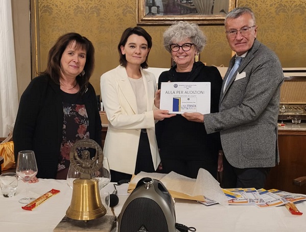 Soroptimist I.Club Forlì: consegna targa per “Una Stanza tutta per sé”- da sin. Anabela Ferreira, Flavia Vitale, Mariarita Zanca, Claudio Mastromattei