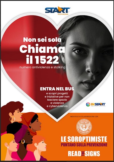 A bordo del bus si terranno infatti brevi momenti di confronto dedicati alle campagne “Non lasciamo spazio alla violenza” di Start Romagna e “Orange the World – Read the Signs” promossa da Soroptimist International, con interventi di rappresentanti istituzionali, autorità locali e studenti delle scuole del territorio.