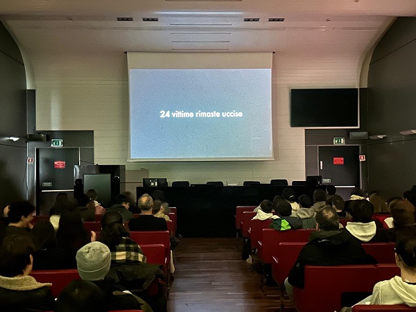 “Vedere questa sala piena di studenti mi rende molto contento: è per questo che sono presidente della Associazione, perché non si perda memoria di quelle tragiche vicende” ha commentato Alberto Capolungo, presidente dell’Associazione dei familiari delle vittime dalla banda della Uno Bianca, salutando i ragazzi.